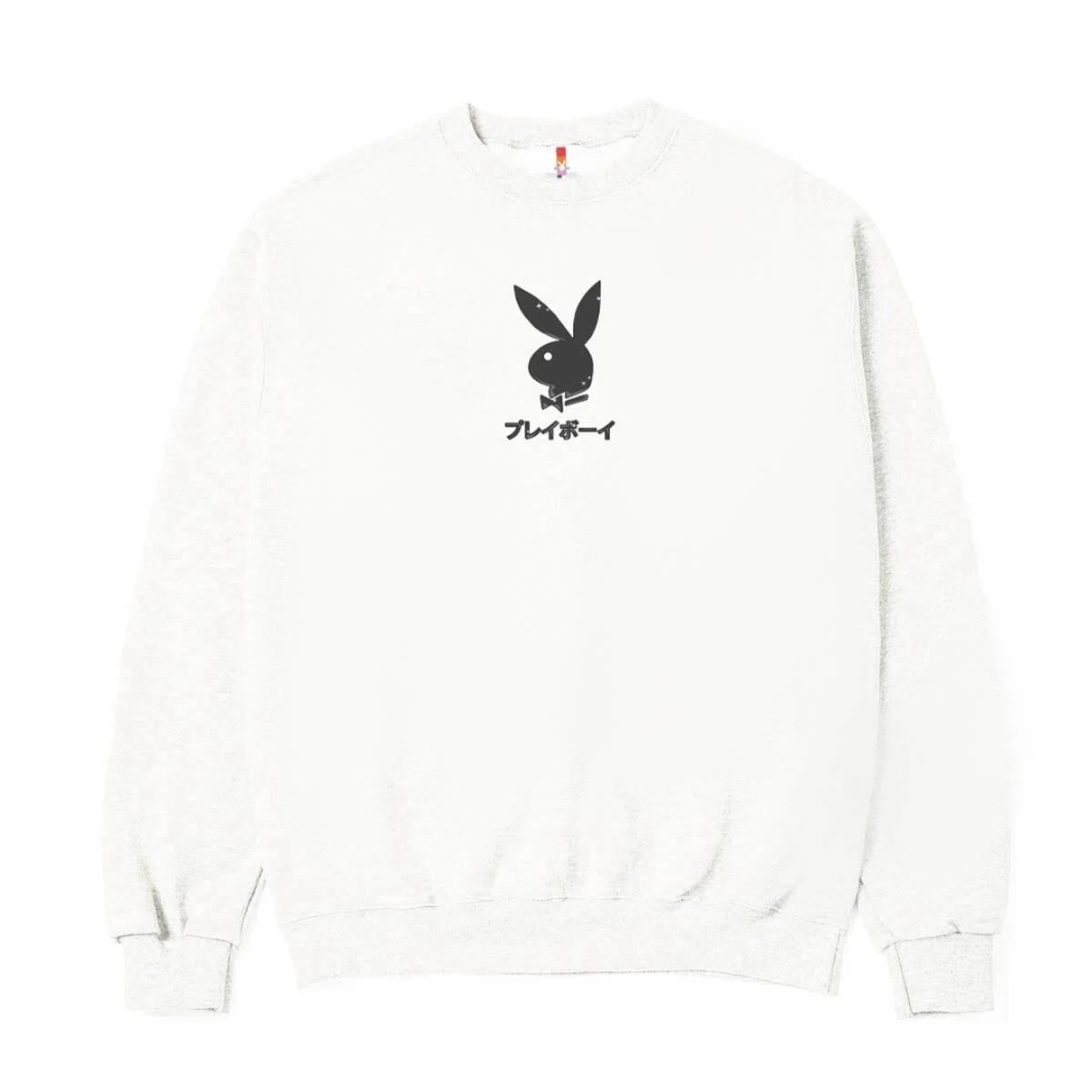 - Front Graphic: Showcasing the iconic Playboy Rabbit Head logo and Japanese masthead, this crewneck is more than just apparel; it’s a piece of history.