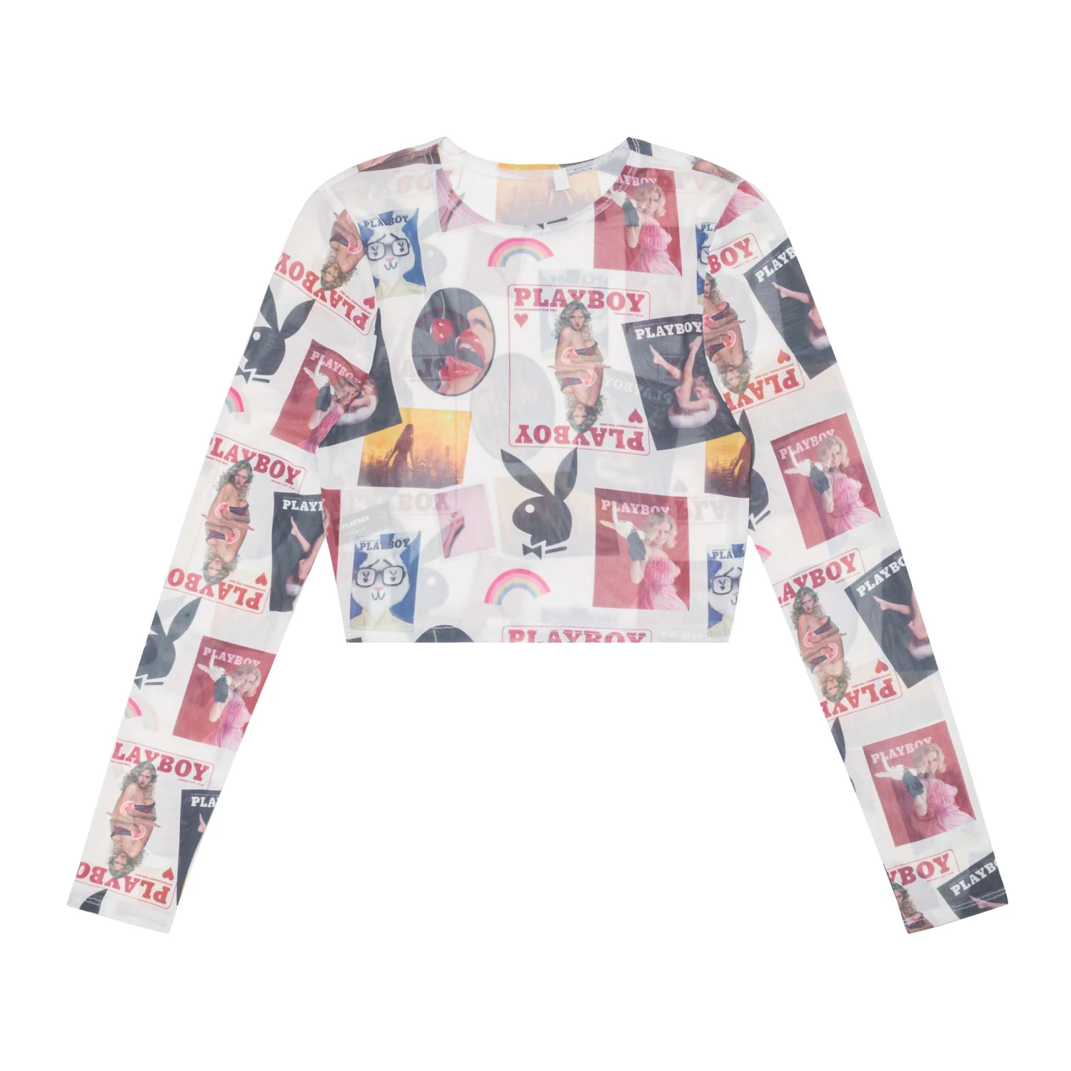 Step into a world of dazzling allure with the V-Day Collage Mesh Long Sleeve Top from Playboy. This isn’t just clothing; it’s a statementโa captivating blend of sultry design and striking aesthetics.