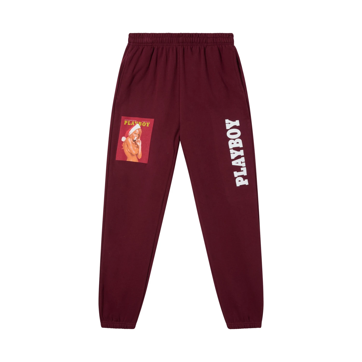 Featuring a graphic of September 1969 Playmate Shay Knuth on the iconic December 1970 Playboy cover, these sweatpants are designed to catch eyes and turn heads. And don’t miss out on the fun fact: look closely, and you’ll find that her Santaโs mustache is the Playboy Bunny, turned upside-down. Now, that’s a detail worth showing off!