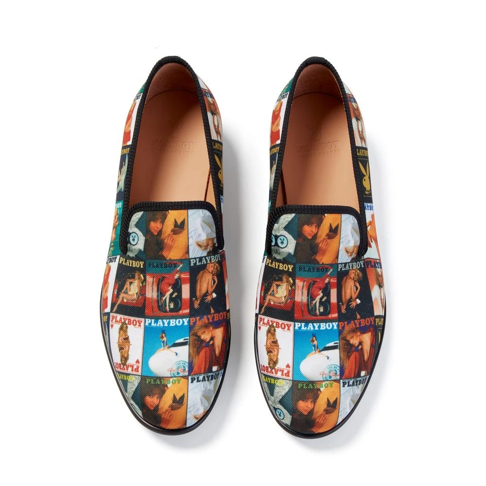 Weโve collaborated with the iconic brand Duke + Dexter to bring you this exclusive and luxurious pair of loafers. Covered in some of Playboyโs most iconic covers, this made in England loafer is constructed from a lightweight cotton canvas. Trimmed in deep black, thereโs a matching custom made rubberized sole and an Italian leather lining, giving all-day comfort.