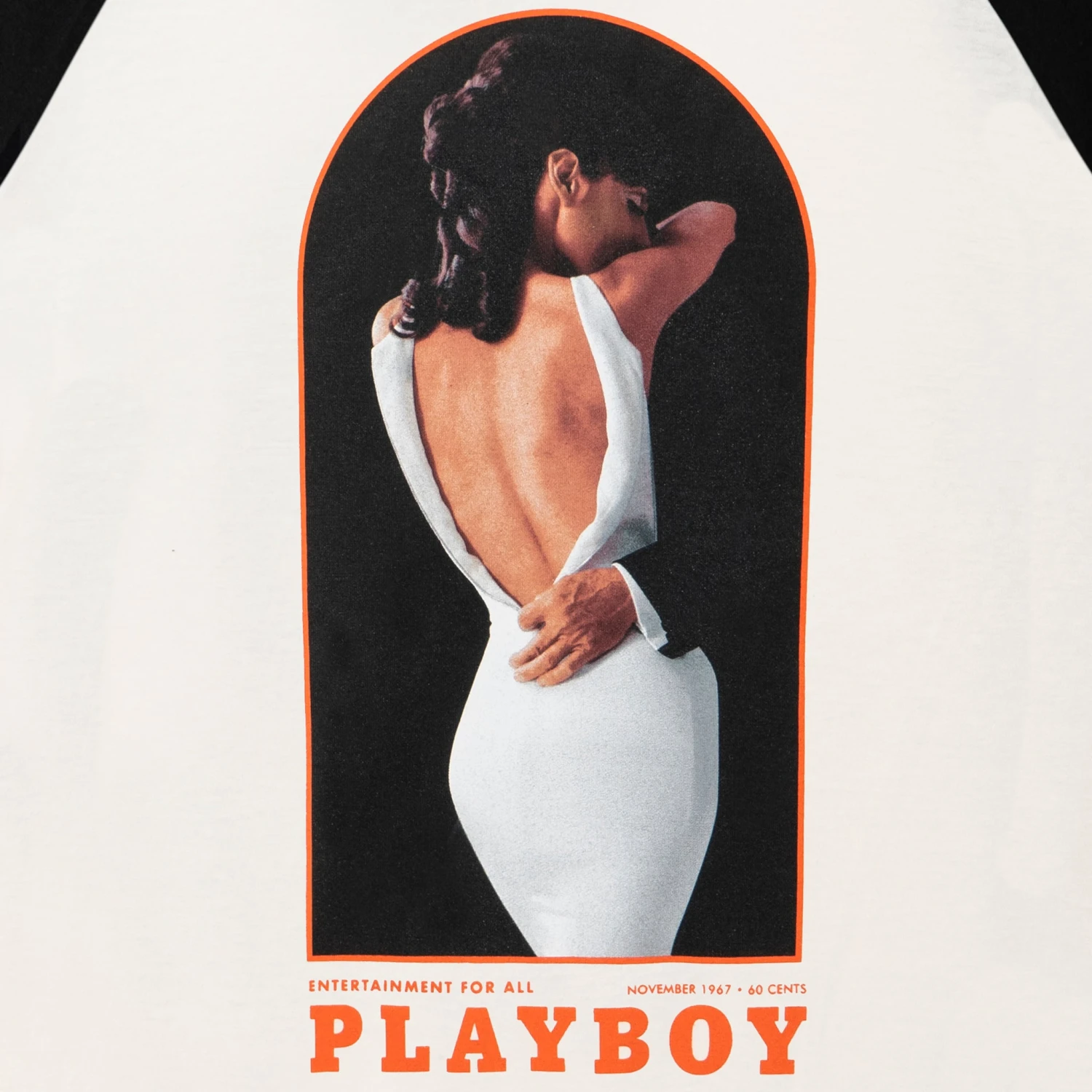 Step into a time capsule of style with the Playboy November 1967 Raglan Baseball T-shirt. The shirt features the illustrious November 1967 cover where the enchanting Beth Hyatt struck a pose for the legendary Playboy photographer Pompeo Posar. A stalwart in the Playboy family, Posar was behind 65 Playmate pictorials and 40 iconic covers. He even teamed up with surrealist Salvador Dalรญ for a 1974 pictorial. And here’s the kicker: Beth’s dress on the cover is subtly shaped like a Bunny!