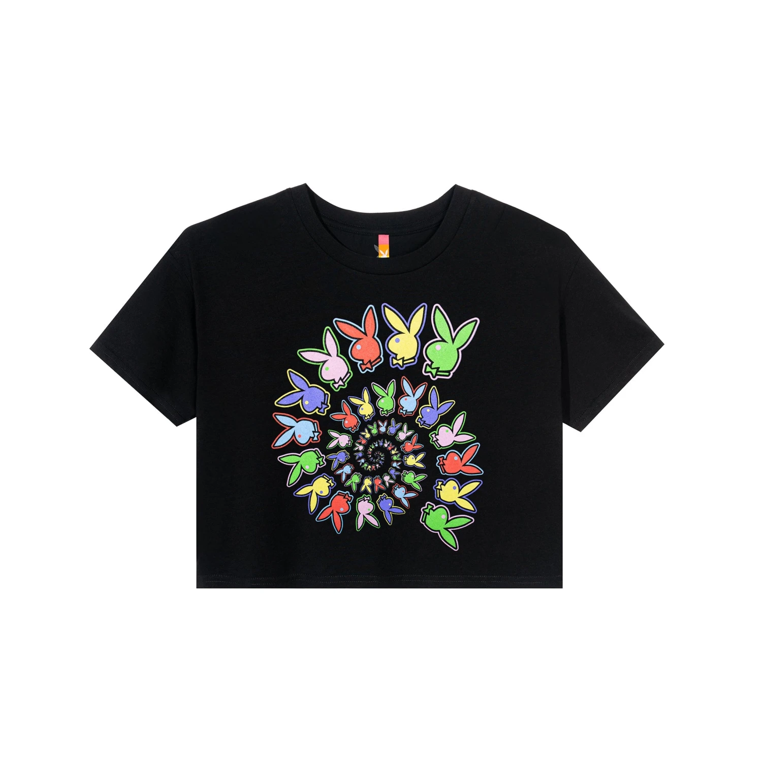 Dive into the vibrant intersection of past and present with the Playboy x Color Bars Spiral Women’s Cropped T-Shirt. This unique piece marries the audacious spirit of the ’80s with today’s cutting-edge fashion sensibilities, offering a bold statement for those who don’t shy away from expressing themselves.