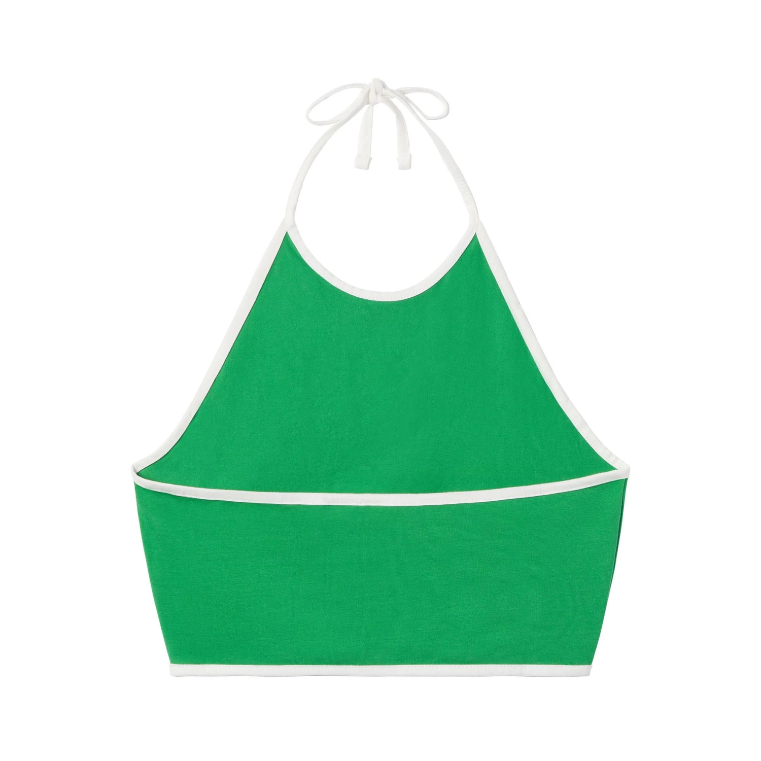 The crop-top design makes it irresistibly sexy, while the low-cut back adds a dash of intrigue. Contrasting trim finishes off the look with a touch of avant-garde. Ideal for those who embrace their sultry side, this top is more than a fashion statementโit’s a declaration of individuality.