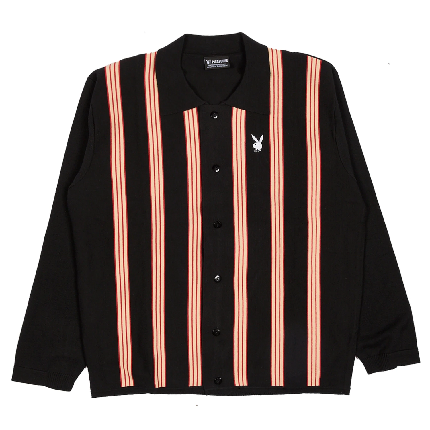 Strut your stuff in a cardigan that’s more than just another layer. The Playboy x Pleasures Club Woven Cardigan Sweater combines the iconic Rabbit Head and a Pleasures graphic in a vintage style that sets you apart.