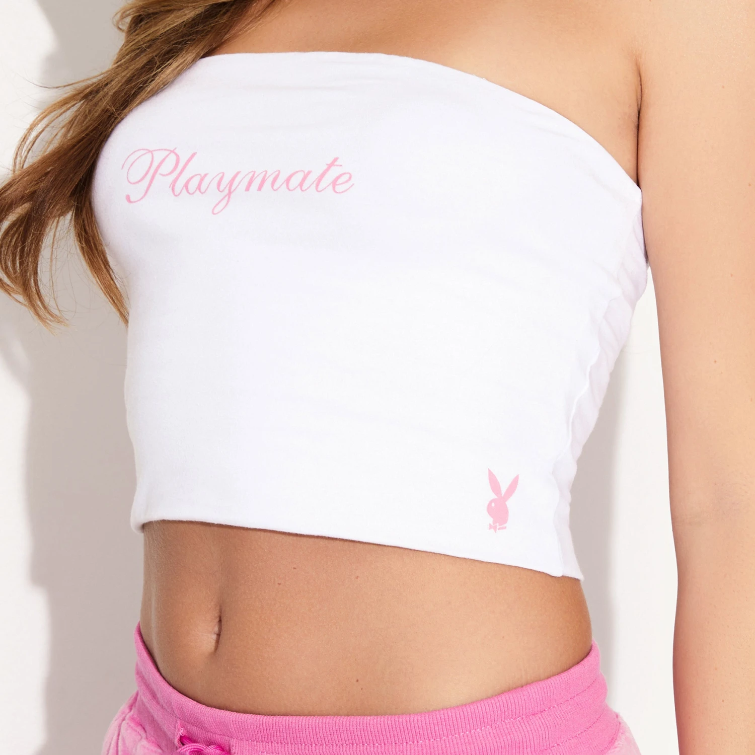 This white Playmate Bandeau isn’t just a piece of clothing; it’s a statement. It’s a celebration of the multifaceted womanโbrilliant, beautiful, and bold. It’s about being a Playmate for a day, not just in allure but in brains and bravery.