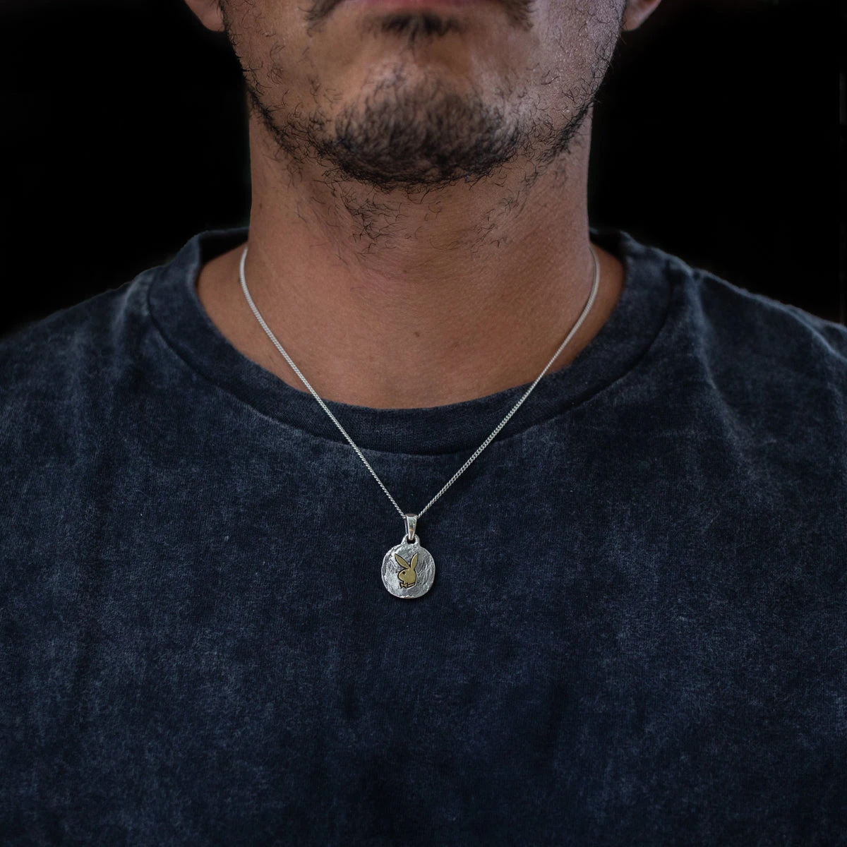 Elevate your look with this rugged, 925 sterling silver circular bunny pendant. Handmade from start to finish in Bali, this unique necklace is minimal and stylish.
