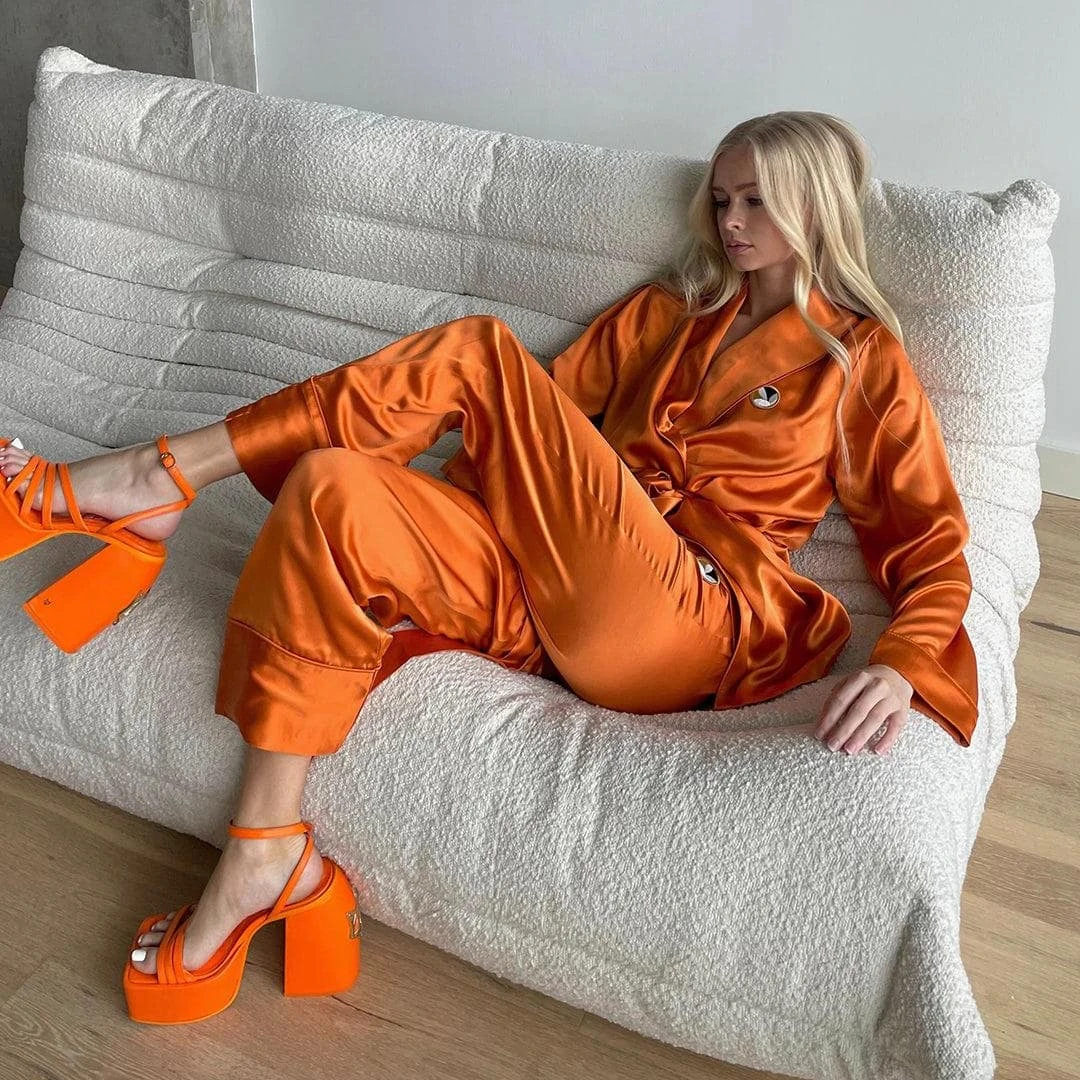 Elevate Your Lounge Experience: Check out our exclusive silk robe top to complete your luxurious lounging ensemble.