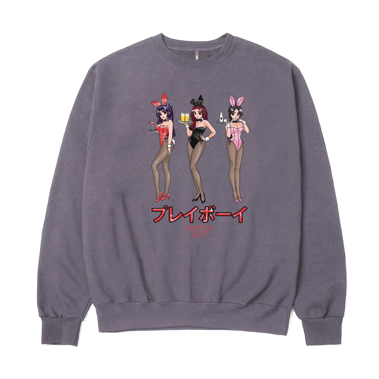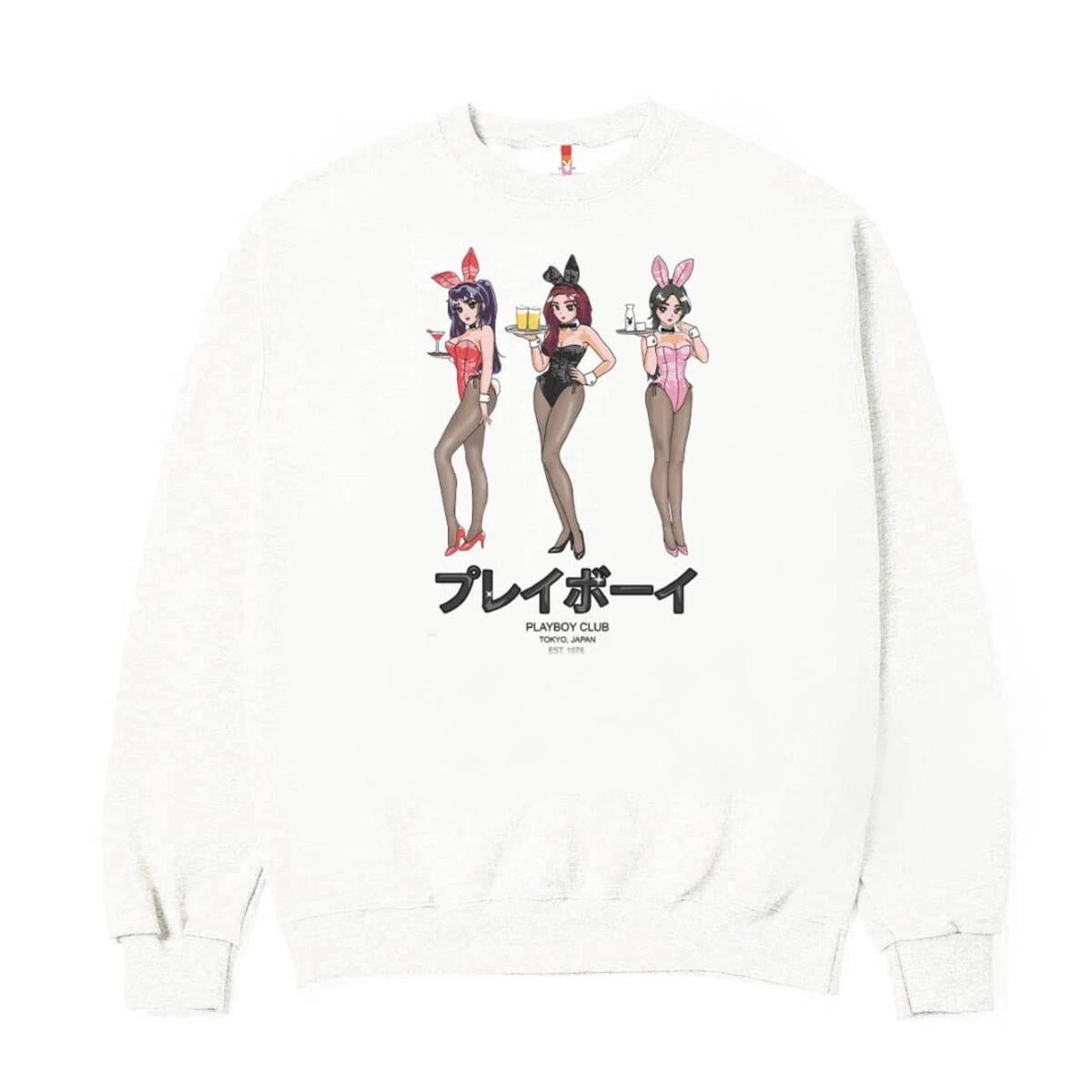 Witness the blend of streetwear and sophistication with the Playboy x Color Bars collaboration that pays tribute to the original Playboy Club Tokyo, founded in 1976. This isn’t just a crewneck sweatshirt; it’s a style statement that encapsulates exhilarating vibes from Tokyo nightlife. Adorned with the Playboy masthead in Japanese and anime-inspired graphics featuring Playboy Bunnies: Sara, Kimi, and Kiko, this sweatshirt is a must-have for those who dare to stand out. Turn heads and set trends with this unique and exhilarating Tokyo Club Happy Hour Crewneck Sweatshirt.