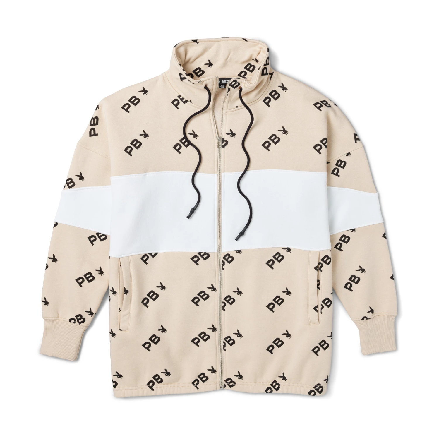 Slip into something that’s not just comfortable but also high-octane stylish with Playboy’s Women’s All Over Print Color Block Zip Sweatshirt.