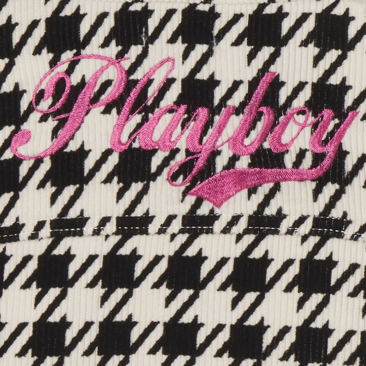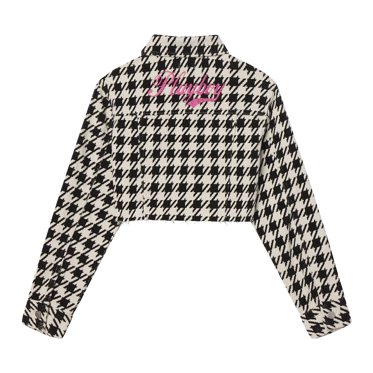 Unleash your chic side with the Women’s Houndstooth Cropped Jacket by Playboy. Tailored from sumptuous corduroy fabric, this jacket features a jaw-dropping houndstooth print, delicately finished off with a raw cut hem. It’s not just a jacket; it’s a style statement embroidered with the iconic Playboy logo.